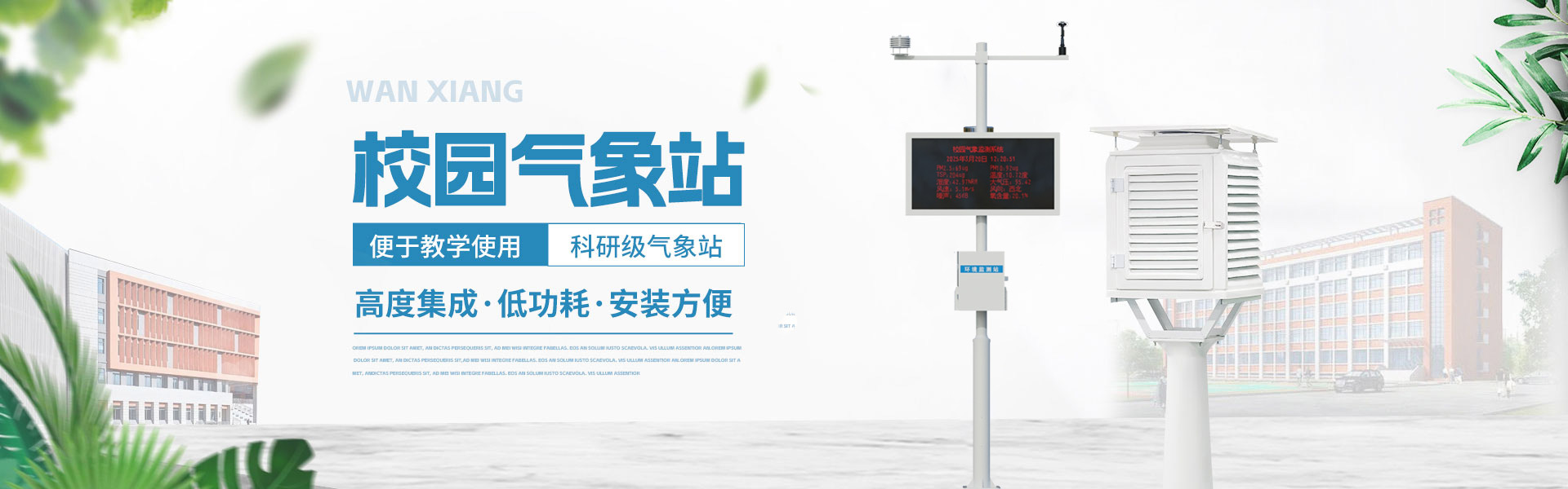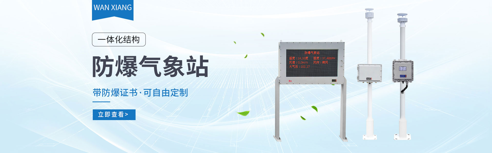 山東萬象環(huán)境科技有限公司官網(wǎng)主要產(chǎn)品有防爆氣象站,校園氣象站,農(nóng)業(yè)氣象站,負(fù)氧離子監(jiān)測站,超聲波氣象站,歡迎咨詢19853697985!